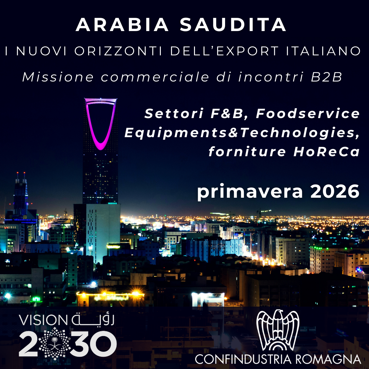 Confindustria Romagna organizza un ciclo di missioni commerciali in Arabia Saudita, un’iniziativa strategica per accompagnare le imprese italiane interessate nello sviluppo di relazioni economiche con operatori locali.
